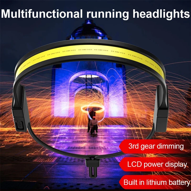Bikight LED+COB 3 Modes COB Running Headlamp USB Rechargeable Power Dispaly Waterproof Headlight Head Torch for Camping Dog Walking Fishing Hiking Search Light