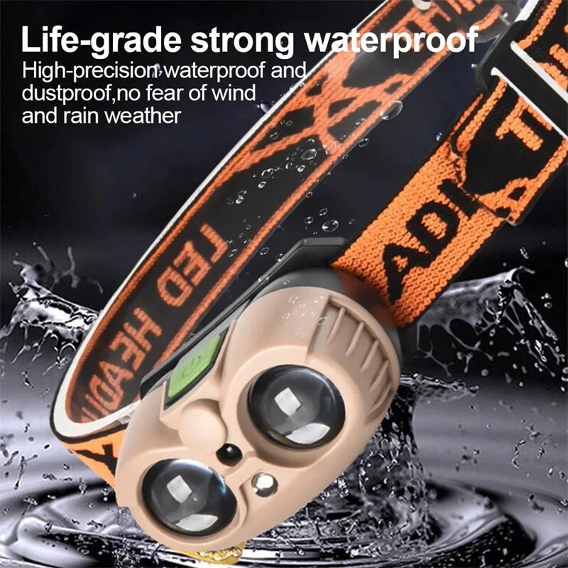 Bikight Smart Body Motion Sensor Mini LEHeadlamp with Band, USB Rechargeable Headlight Waterproof Camping Flashlight Portable Head Light Torch Lamp