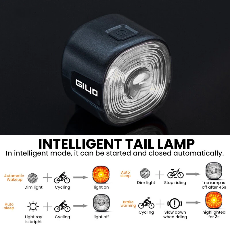 GIYO Smart Brake Sensing RGB Bicycle Taillight Waterproof Warning Flash Lamp USB Charge Bike Rear Light for Outdoor MTB Night Riding Safting