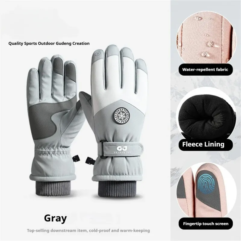 Golovejoy 1 Pair Outdoor Ski Gloves for Men Women Touchscreen Non-Slip Waterproof Thickened Warm Cycling Gloves for Autumn Winter