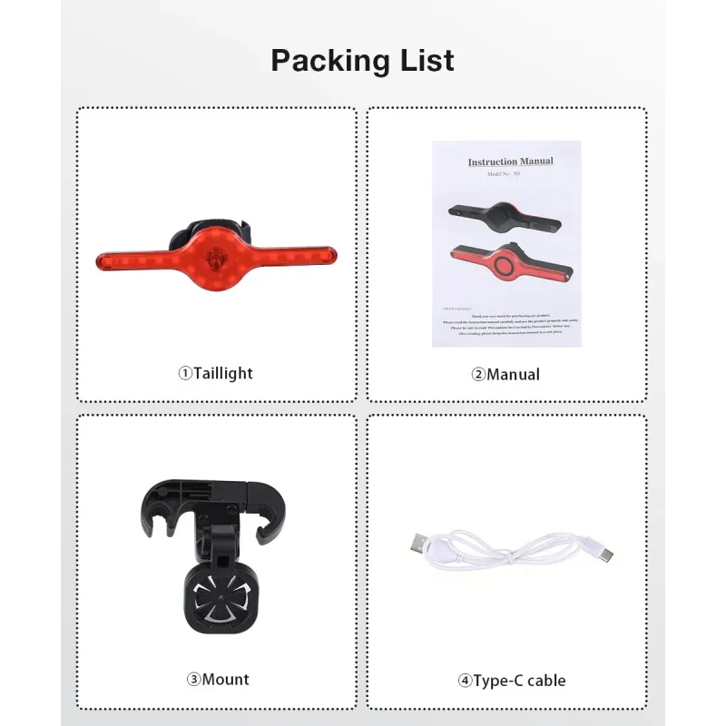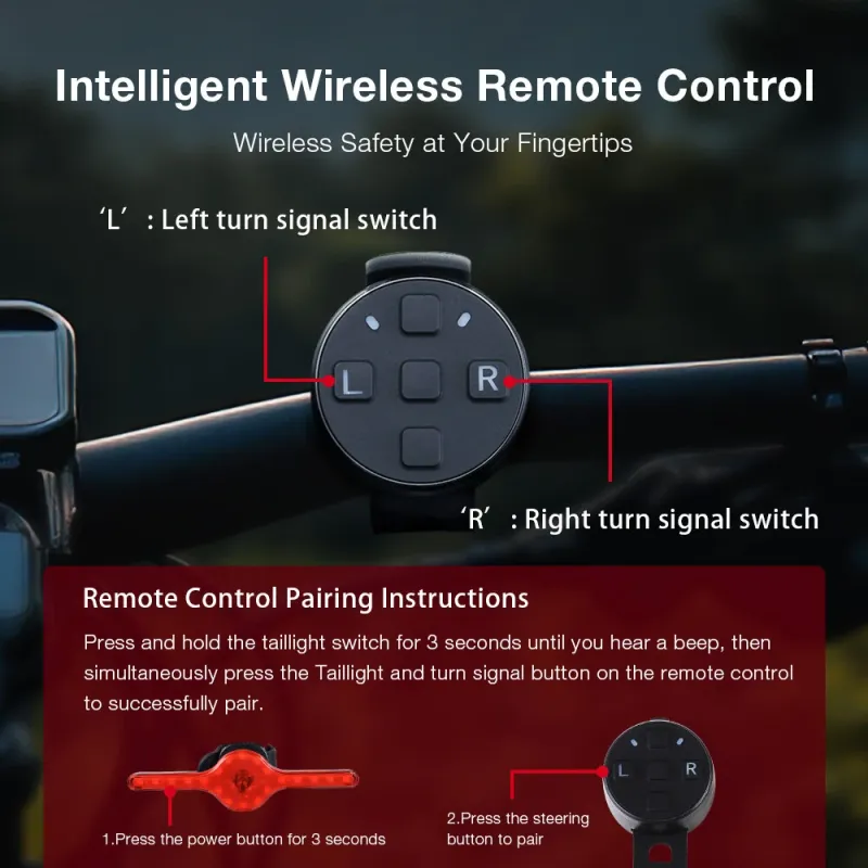 LAOTIX8 Wireless Remote Bike Turn Taillight 400mAh Battery 7 Light Modes Type-Rechargeable IPX5 Waterproof Smart Brake Sensing Loud Warning Bicycle Rear Light for Night Safe Cycling