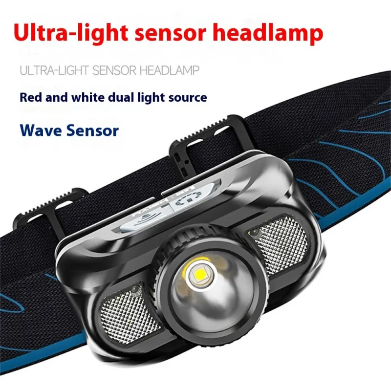 LEM Outdoor 800LM Wave Sensor Headlamp Dual Light Source Ultra-Bright Headlamp Long-Lasting Rechargeable Helmet Lamp for Outdoor Night Fishing Riding