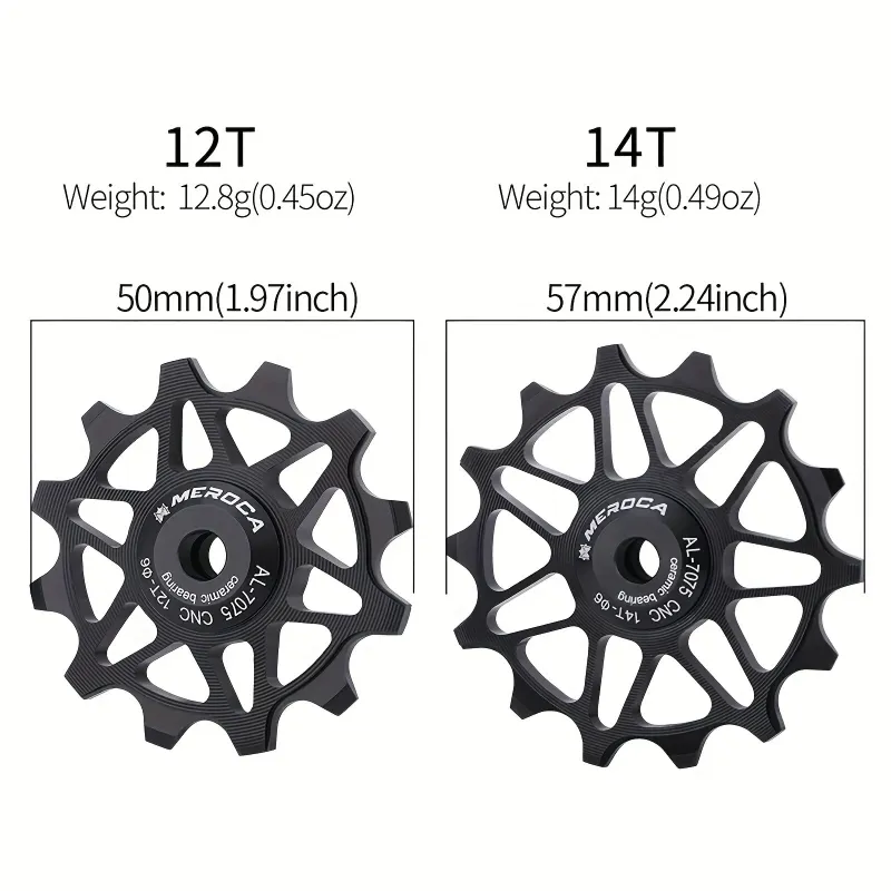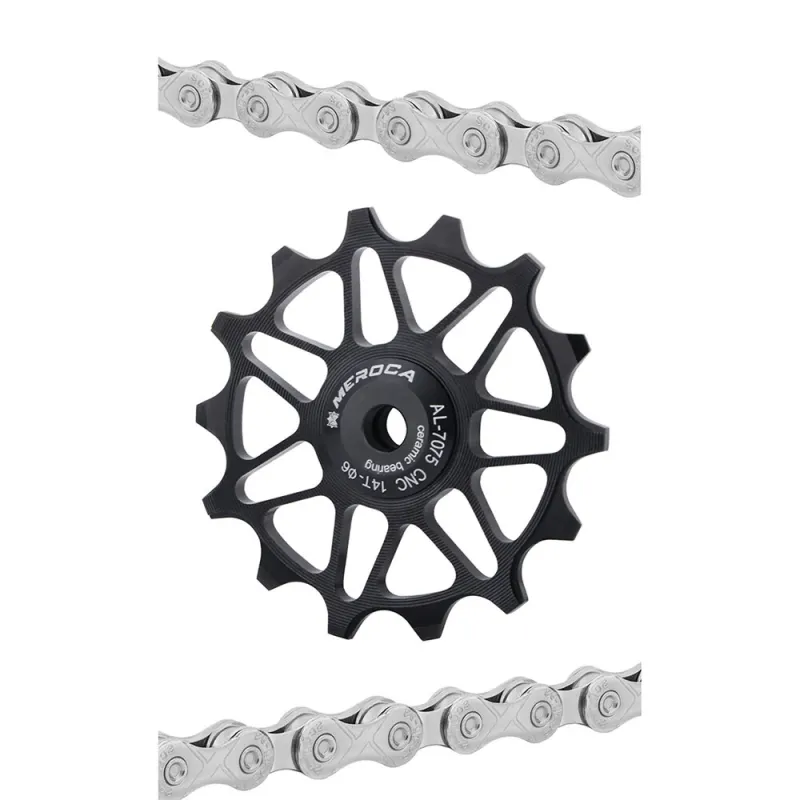 MEROCA 12/14Bicycle Ceramic Pulleys Lightweight Aluminum Alloy Smooth Speed Change Bike Rear Derailleur Bearing Guide Wheel for MTB