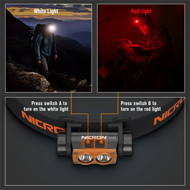NICRON H15500LM High Brightness Headlamp Spot/Flood Double-Swich LEFlashlight LELight Portable Waterproof Dual-Fuel Headlamp