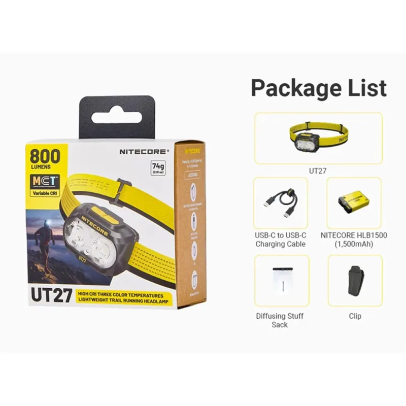 Nitecore UT27 MC800 Lumen 3 Color Temperatures Running Headlamp USB Rechargeable LEHeadlight With Removable Rechargeable Battery LEHead Torch
