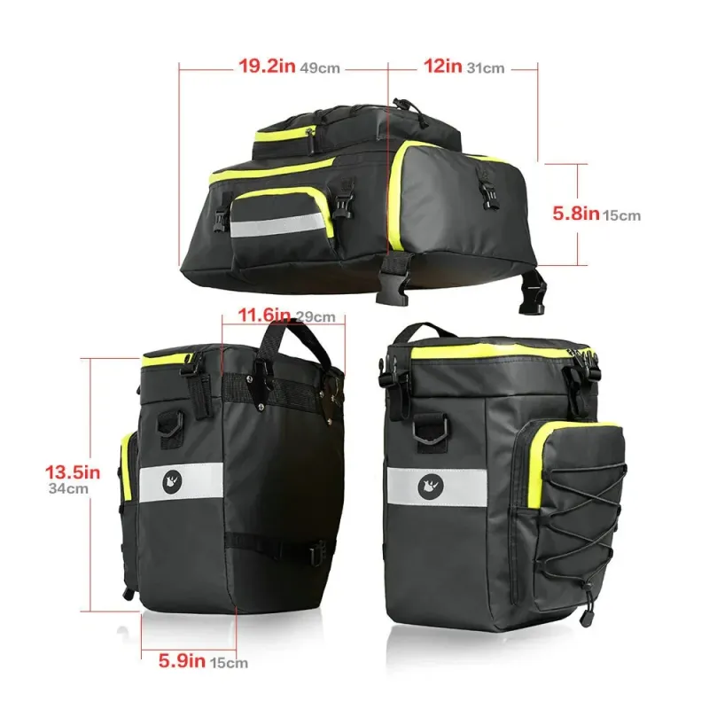 Rhinowalk 65L 3 In 1 Bicycle Pannier Waterproof Multi-functional Cycling Double Side Rear Rack Tail Seat Pack Luggage Carrier Bags for MTB