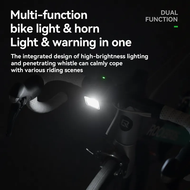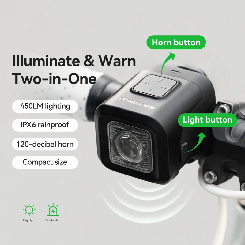 ROCKBRO2-in-1 Bike Headlight Horn 450LM Bicycle Front Light 120dB Warning Horn IPX6 Waterproof Type-Charging High Decibel Safety Cycling Horn Light for MTB Riding
