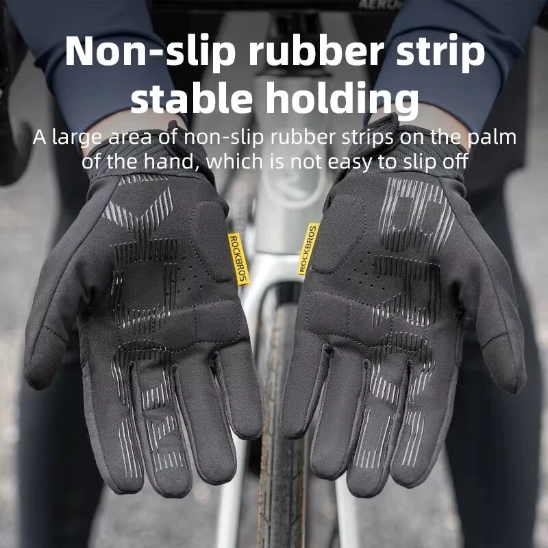 ROCKBROCycling Gloves Touch Screen Winter Thermal Fleece Warmer Windproof Full Finger Non-slip Gloves for Riding Hiking Climbing