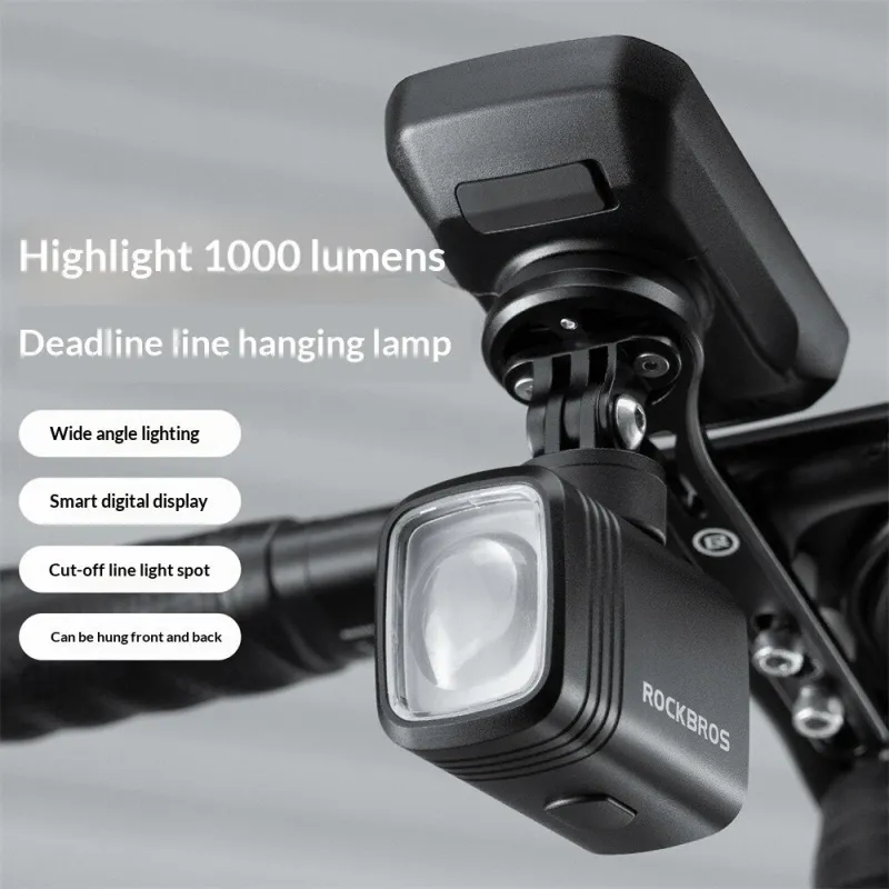 ROCKBROM6 1000LM Hoisting Bicycle Headlights Lightweight IPX6 Waterproof Digital Display Type-Charging Anti-glare Cycling Frontlight