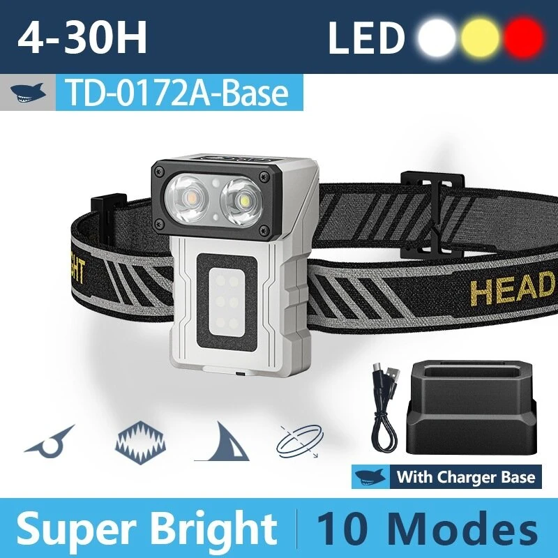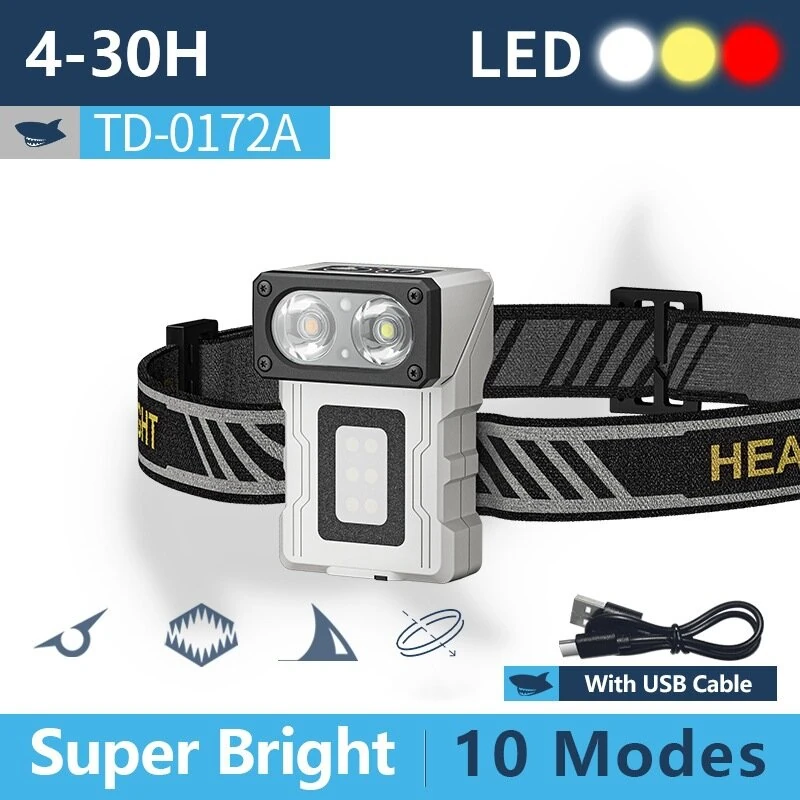 Smiling Shark TD-0172 Motion Sensor Headlight, Rechargeable LEHeadlamp, Three-Color Light Source Headlight Induction Cap Clip Light
