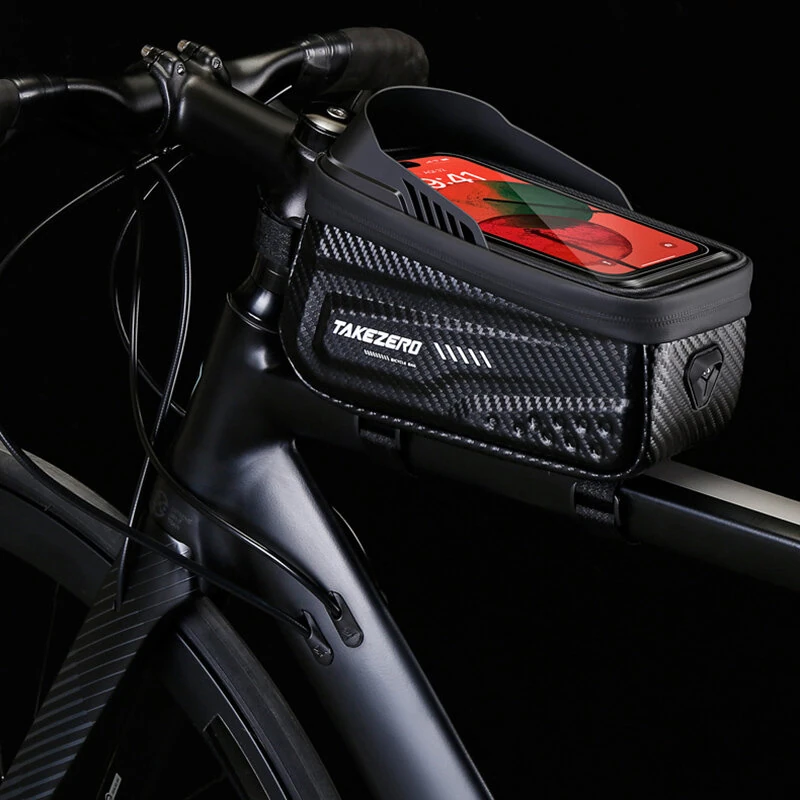 TAKEZERO 1L Bicycle Bag Waterproof Bike Phone Holder Frame Front Tube Cycling Bag Phone Case Support for 4.7-6.8 Inch Touch Screen Smartphones