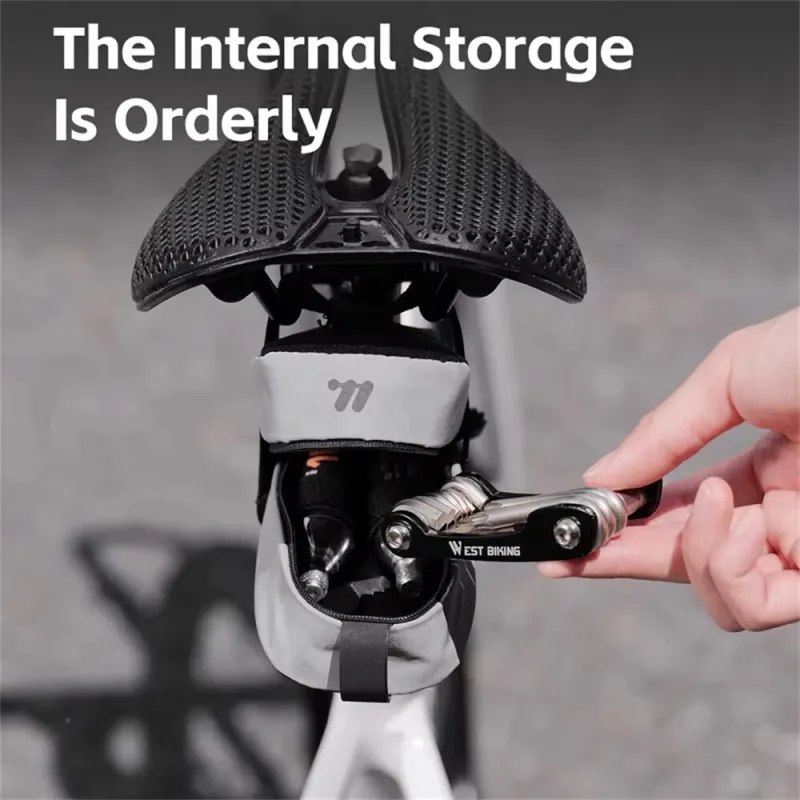 WESBIKING 0.4L Reflective Bicycle Saddle Bag Mini Lightweight Portable Zipper Bike Bag Tail Pouch for Road MTB