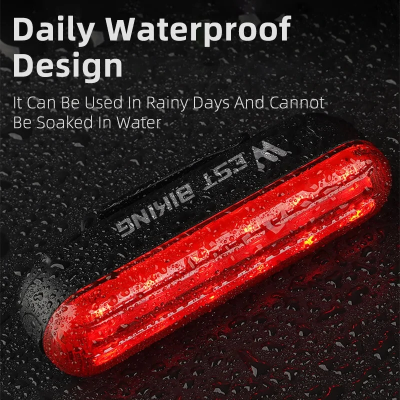 WESBIKING Smart Brake Sensor Bike Taillight 450mAh Battery 3 Light Modes Type-Rechargeable Waterproof Wear-resistant Bicycle Rear Light for Night Cycling