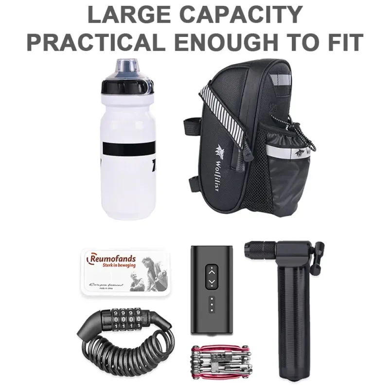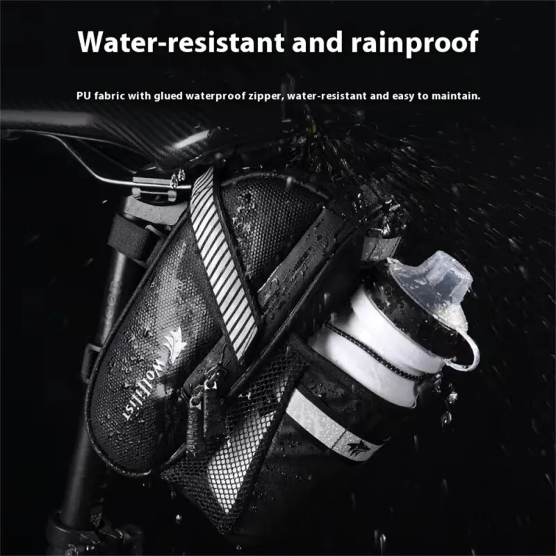 Wolfilist 1.8L Large Capacity Waterproof Bicycle Bottle Bag with Reflective Strips Lightweight Practical Bike Saddle Bag for Water Bottles Towels Repair Kits Essentials
