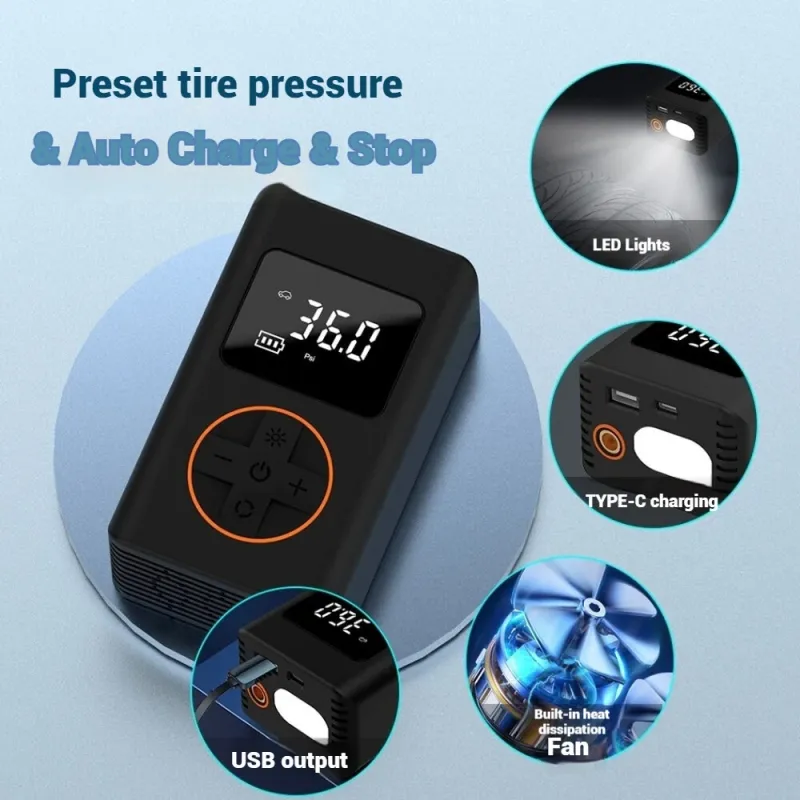 XANE150PSPortable Mini Smart Electric Inflator Pump 2000*2 mAh Digital Display USB Charging LELight Multifunctional Tire Inflation Pump for Car Motorbike Bicycle Balls
