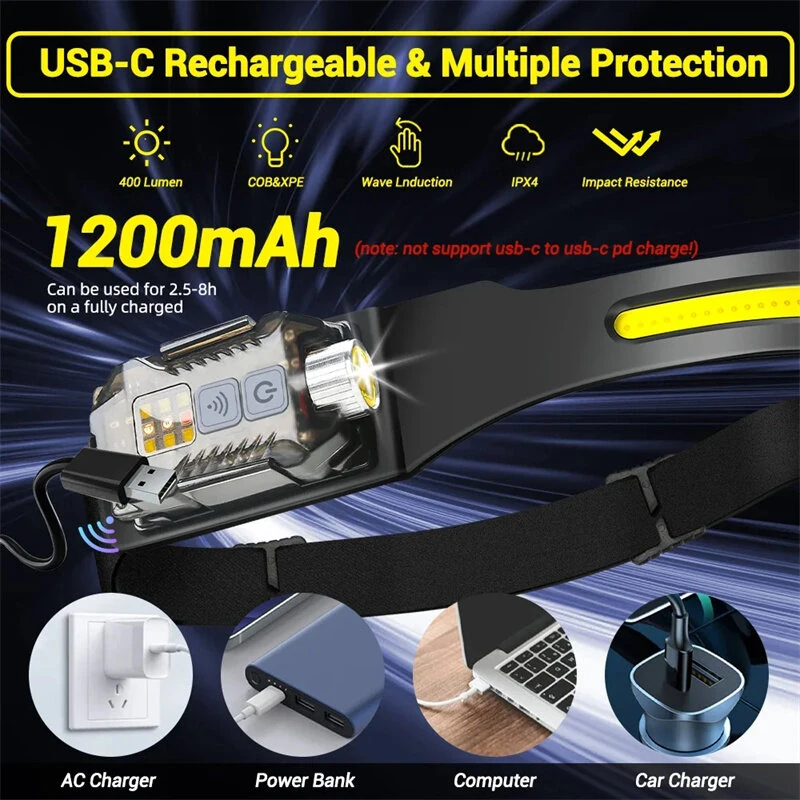 Bikight LECOB Sensor Headlamp with Tail Magnet UV Light USB Rechargable Head Flashlight Headlight LECOB Work Light