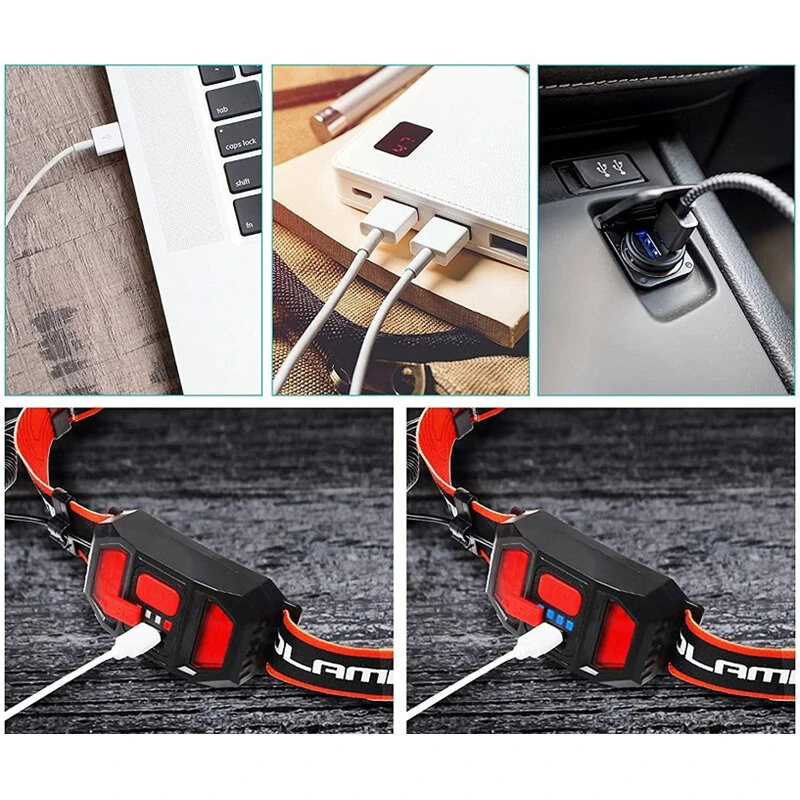 COB LEHeadlight with Red Strobe Warning USB Rechargeable Headlight Red Light Floodlight Perfect for Riding and Working Head Lamp