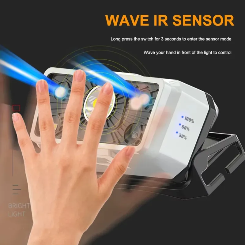 G18 IMotion Sensor Headlamp XPG+COB Running Head Lamp with 5 Modes Dual Light Switch IPX5 Waterproof 45 Degree Adjustable for Fishing Camping Hiking Running