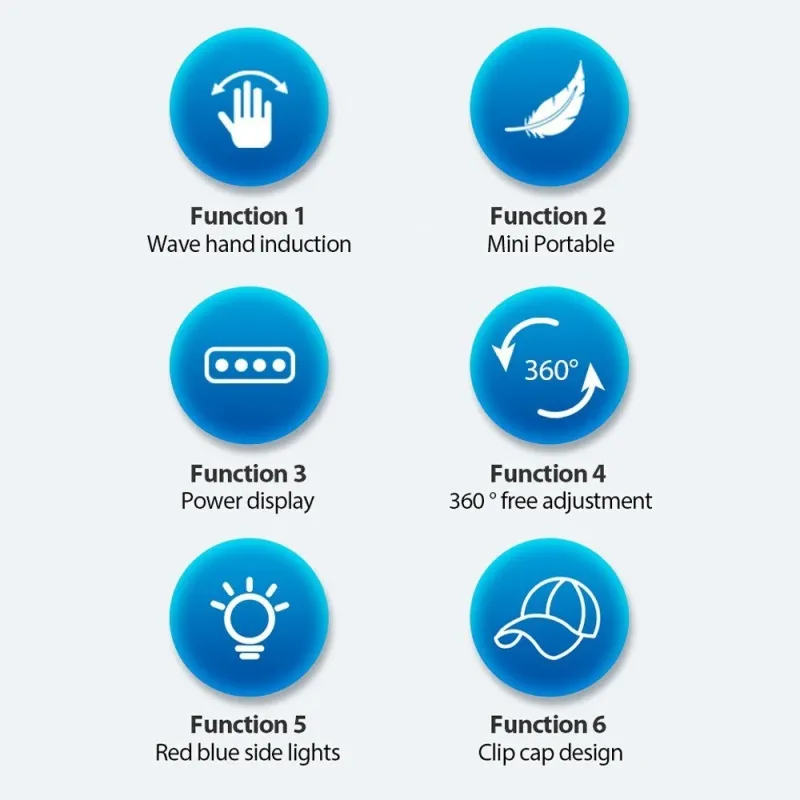 Motion Sensor Smart LEHeadlamp Rechargeable Flashlight Red and Blue Warning Headlight Portable Clip-on Cap Light with 8 Lighting Modes for Outdoor Camping Hiking Fishing Running