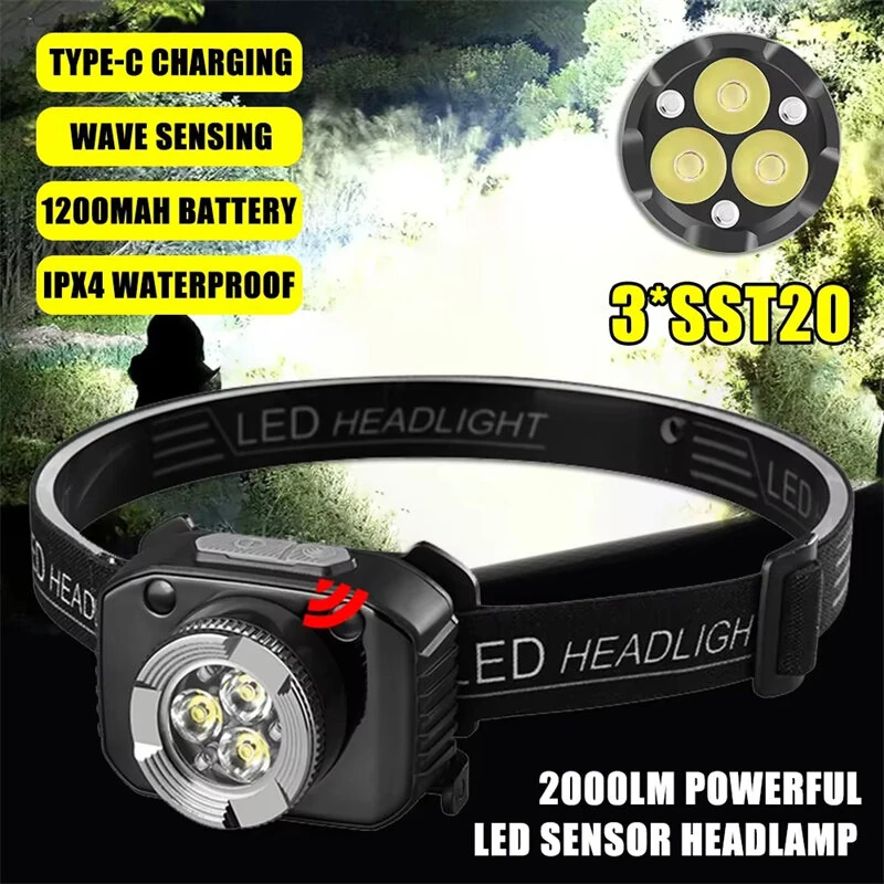 Smart Sensor Mini LEHeadlamp Rechargeable Headlight Built-in Battery Led Headlamp Camping Fishing Flashlight