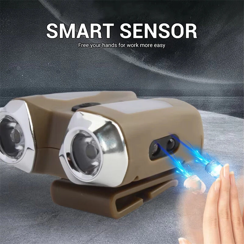 Smart Sensor Portable Multifunction Mini LEClip Light Built-in Battery Type-Rechargeable Headlamp Outdoor Emergency Searchlight