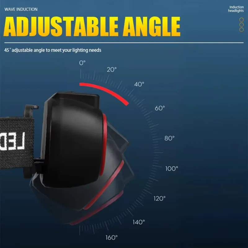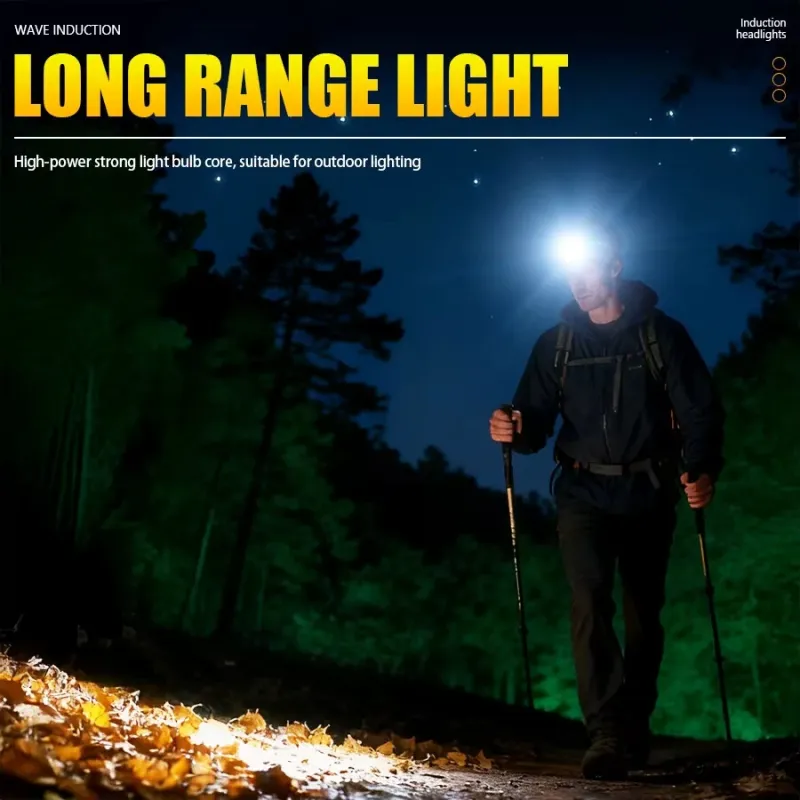 High Light LEHeadlamp with 5 Lighting Modes Gesture Control IPX6 Waterproof Type-Rechargeable Adjustable Angle for Outdoor Camping Fishing Night Riding