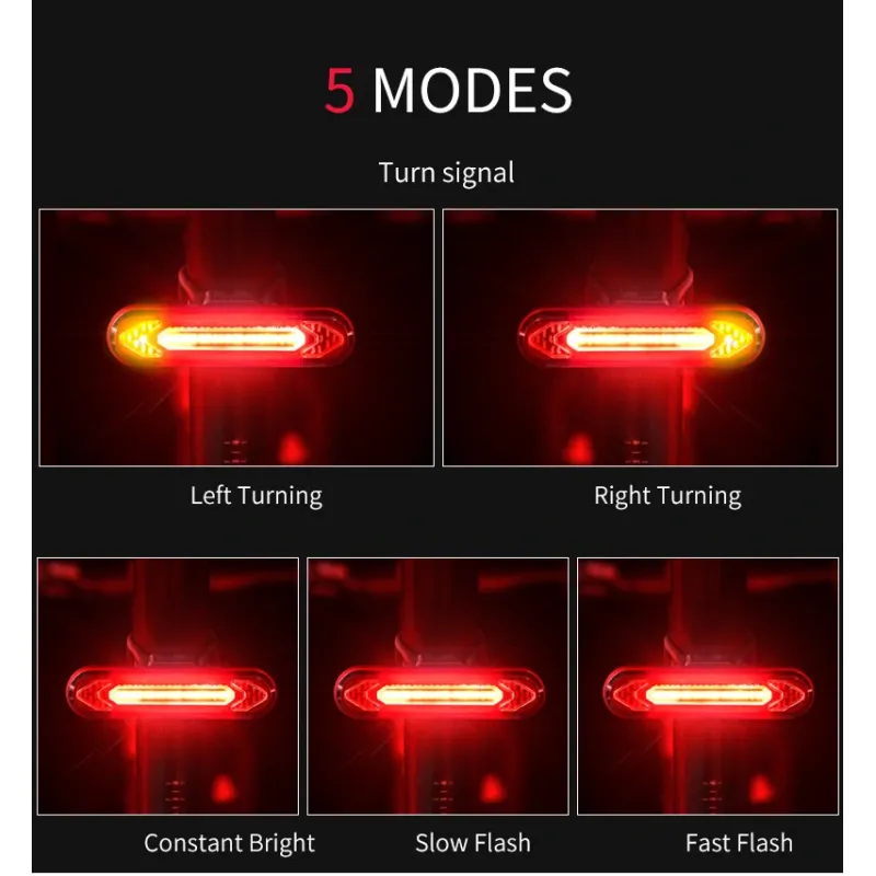 Bicycle Light USB Rechargeable Tail Light Warning Bike Rear Light Smart Wireless Remote Turn Signal Light LEBicycle Lantern