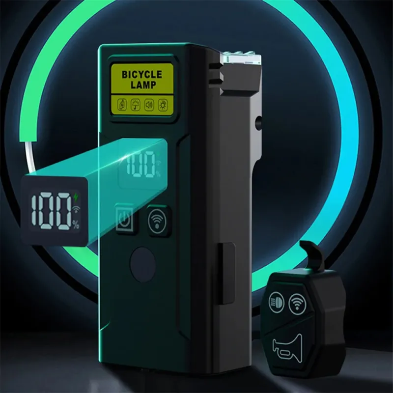 BIKIGHQ09L Wireless Remote Control Bicycle Headlight with Horn Smart Light Sensor Digital Power Display Type-Charging Waterproof Bike Front Light for Outdoor Night Riding Safety
