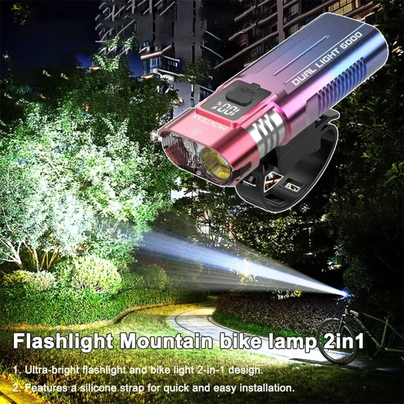 BIKIGHSM220 800LM Dual-core LEBicycle Headlight Battery Level Digital Display USB Charging Waterproof Front Bike Light for MTB Road Night Riding