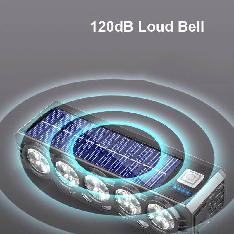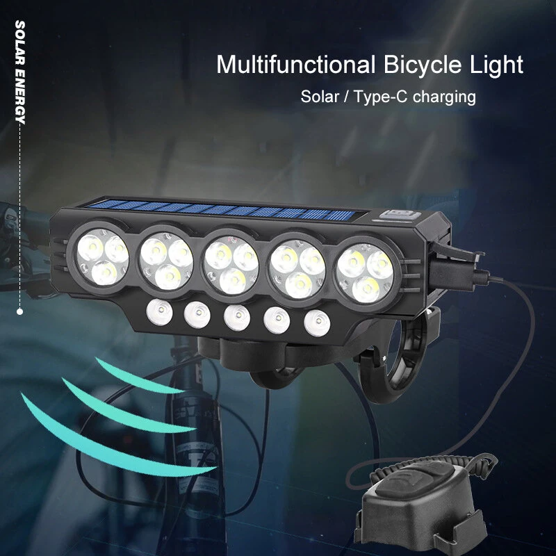 BIKIGHSolar Rechargeable 120dB Horn Bicycle Headlight 4000mAh 2 Model Flash Type-Charging Remote Bike Front Light for Outdoor Night Riding Safety