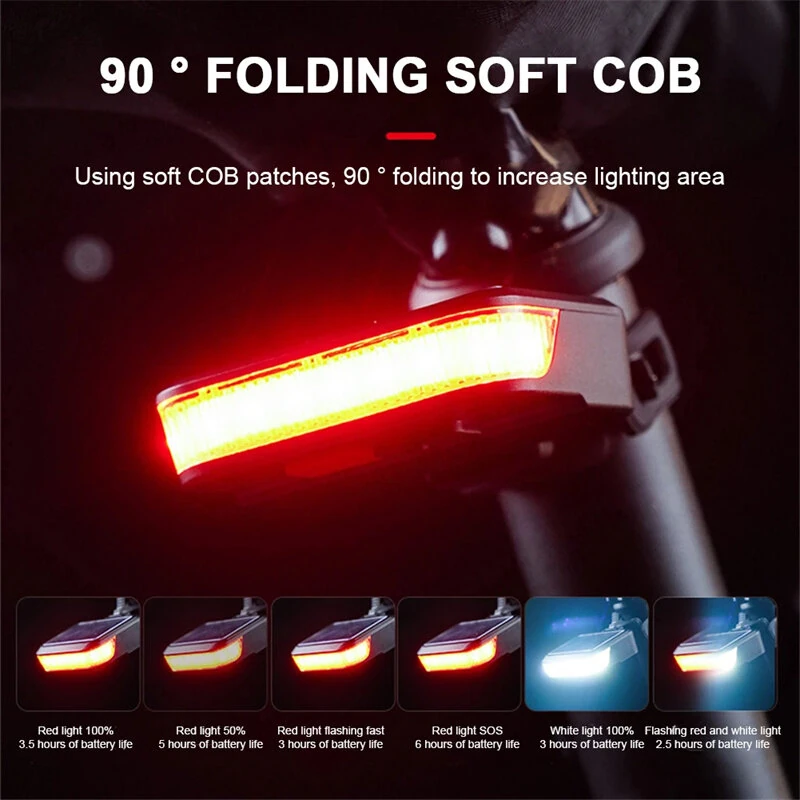 Bikight Solar Bike Taillight 600mAh Battery 6 Light Modes Type-Solar Charging Waterproof Bicycle Rear Light for MTB Bike Motorcycle Electric Vehicle
