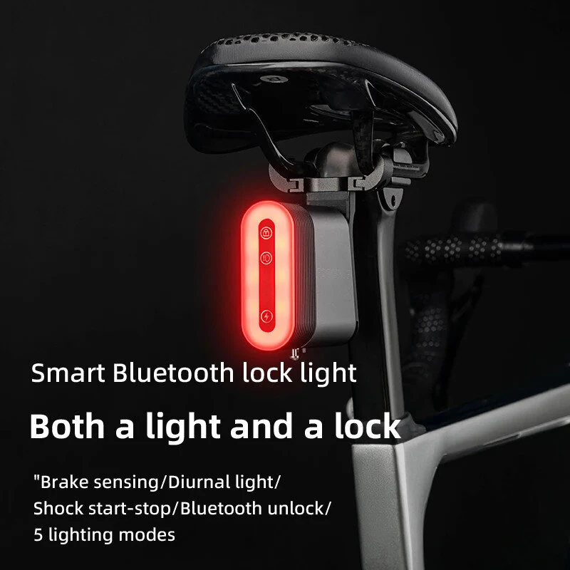 ROCKBROBicycle Bluetooth Smart Lock Taillight Dual Function IPX6 Waterproof 5 Lighting Modes Type-Rear Light Lock for MTB Bike