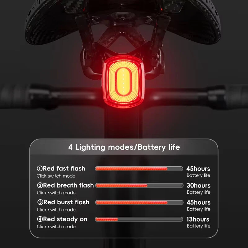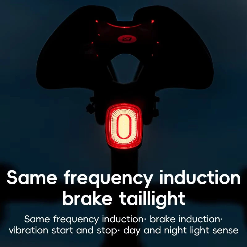 ROCKBROR2 Smart Brake Sensing Bike Taillight Same Frequency Induction Rear Light 4 Lighting Modes IPX6 Waterproof Type-Rechargeable Bicycle Rear Light