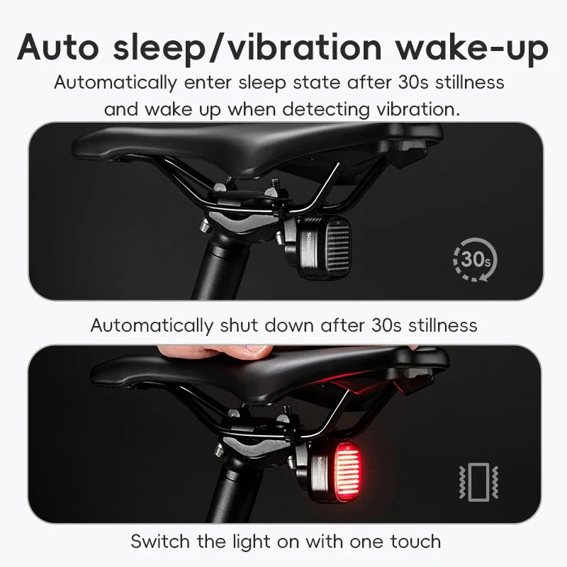 ROCKBROSmart Bicycle Brake Sensing Taillight 12 Light Modes Vibration Sync Feedback IPX6 Waterproof USB Rechargeable Safe Rear Light for MTB Road Bike Cycling
