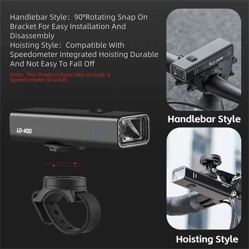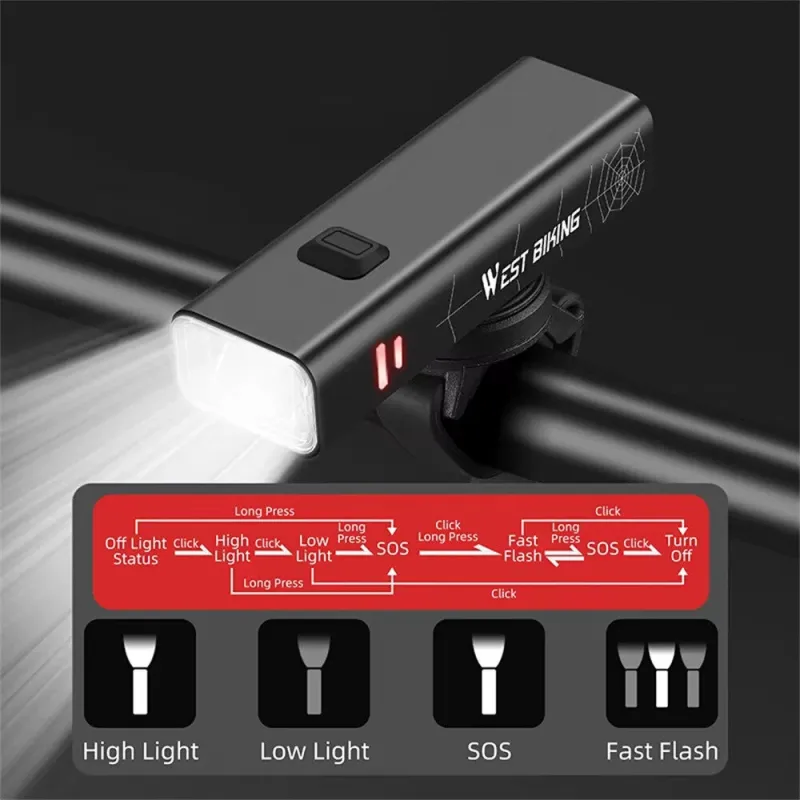 WESBIKING 600/800 Lumen Bicycle Headlight Portable Lightweight Aluminium Flashlight Waterproof Type-Charging Quick Release Top Mounted Bike Front Light for Outdoor MTB Cycling Safety