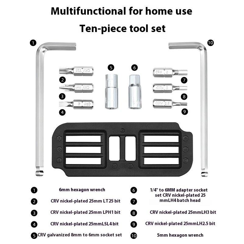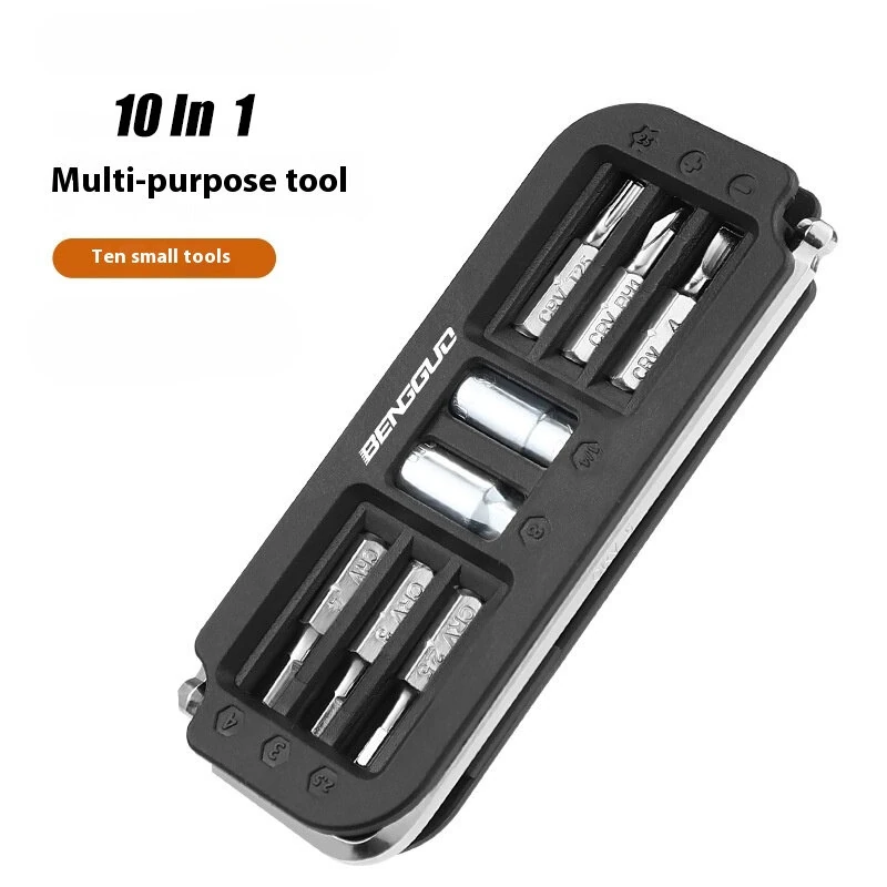 BENGGUO 10 in 1 Portable Bicycle Repair Tools 6mm Wrench 6Pcs CRV Removable Adapter Sleeve for Protable Bike Quick Fix