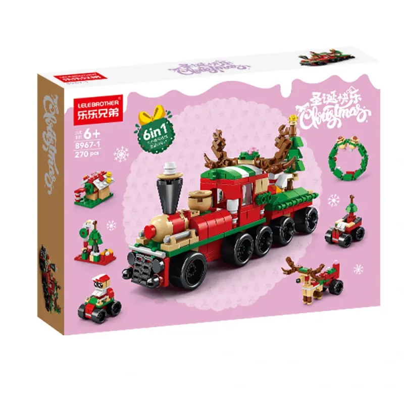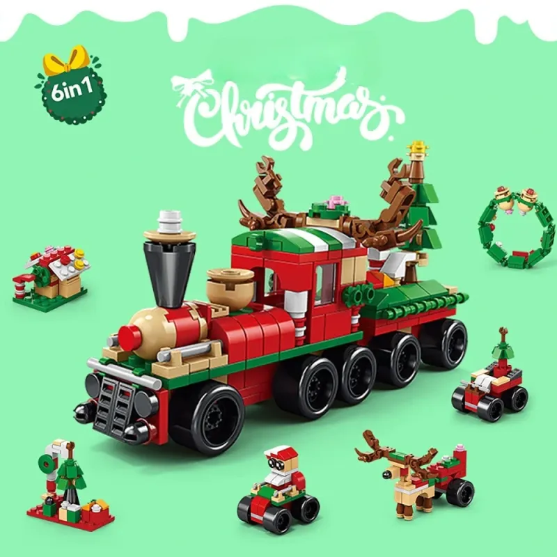 6 in 1 Christmas Train Model Building Blocks Bricks Sets Classic Dolls Kids Toys Gift