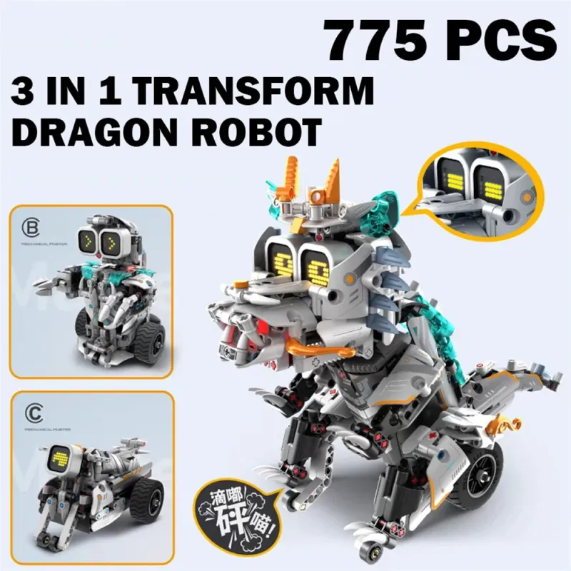 Steam 3IN1 Technical Transform Dragon / Snails / Guitarist / Esports Girl Robot Assembly Building Blocks Kit With Remote Controller Coding Robotic Projects Creative Toys