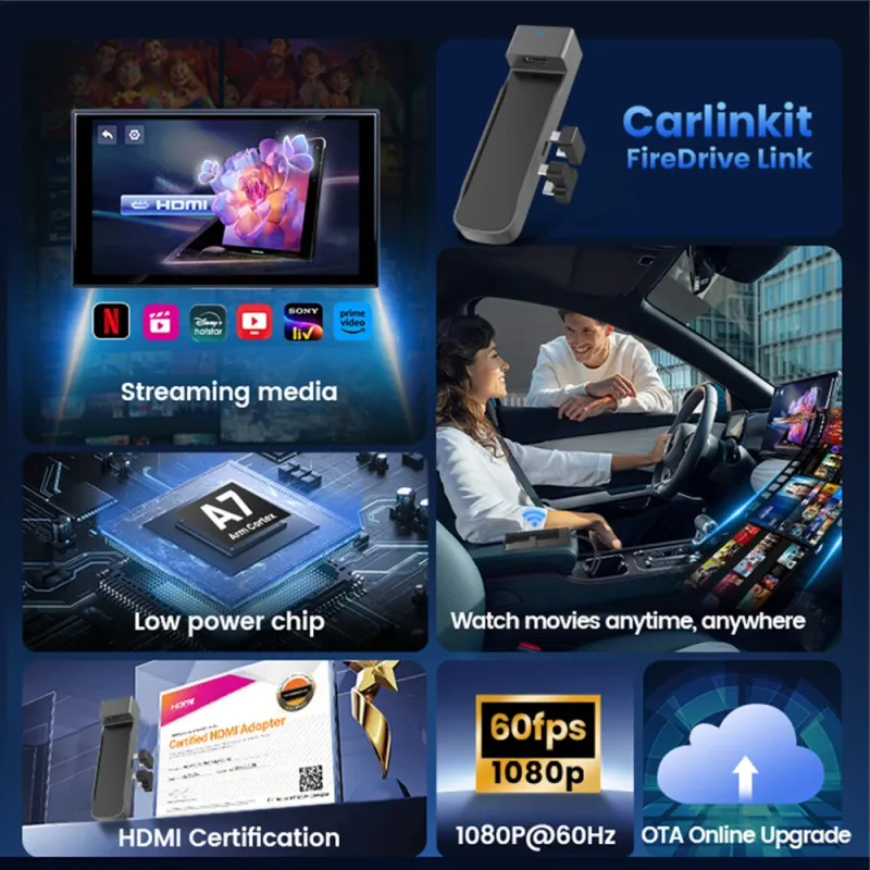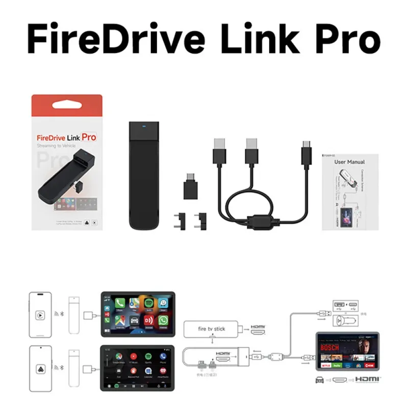 FireDrive Link Pro 3-In-1 Wireless Adapter Wireless Android Auto CarPlay For Fire TV Stick Lite/Max/HD Play Video