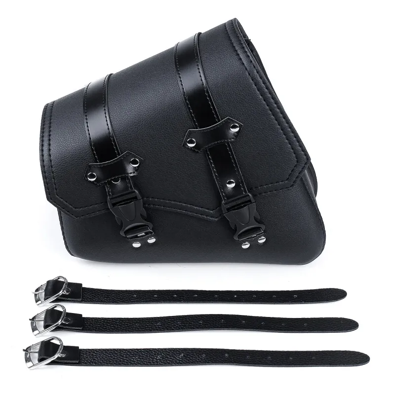 Motorcycle Saddlebags 3 Quick Release Buckle Black PU Leather Waterproof Universal