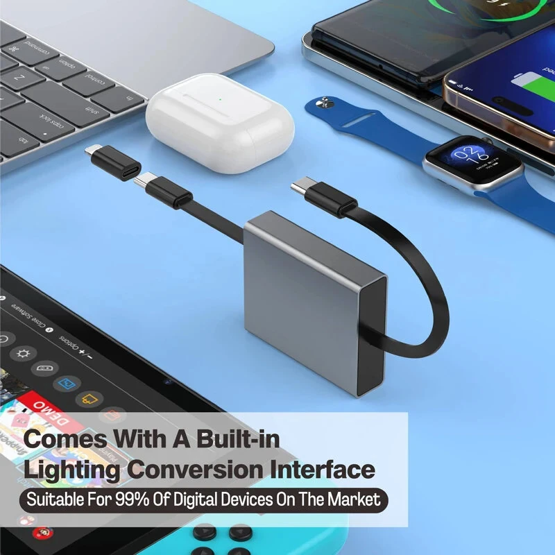 4-in-1 Telescopic USB Cable Box PD66W USB-A/USB-C to USB-C Fast Charging with iP Adapter for iPhone 17 17Pro 16 Pro Max 15 14 for Samsung for iPad Pro for ASUS Lenovo Laptops