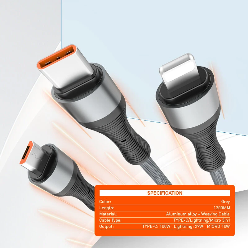 LDNIO LC-94c 100W Type-C to iP/Type-C/Micro USB Cable Fast Charging Data Transmission Copper Core Line 1.2M Long for iPhone 16 15 14 Pro Max for Huawei Mate XT for Xiaomi MIX Fold4 for Samsung Galaxy Z Fold 6