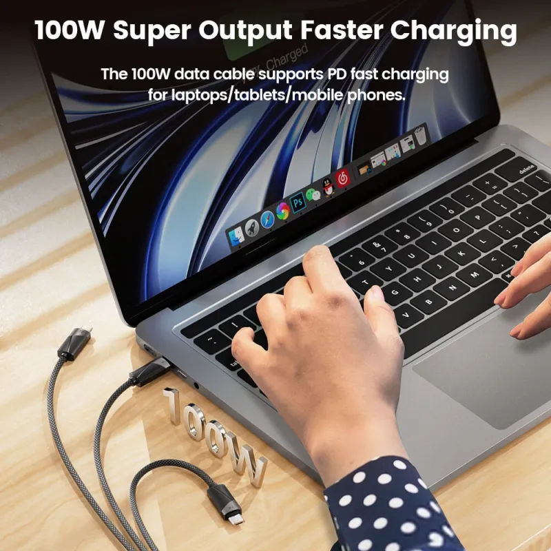 Toocki TQ-X07 100W USB-C to USB-C/Micro/iP Cable Fast Charging Data Transmission Tinned Copper Core Line 1.2M Long for iPhone 16 16 Plus 15 14 13 Pro for Huawei Mate XT for Xiaomi 15pro for Samsung Galaxy Z Flip6 for Oppo Reno 13