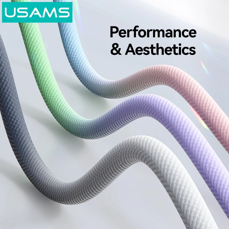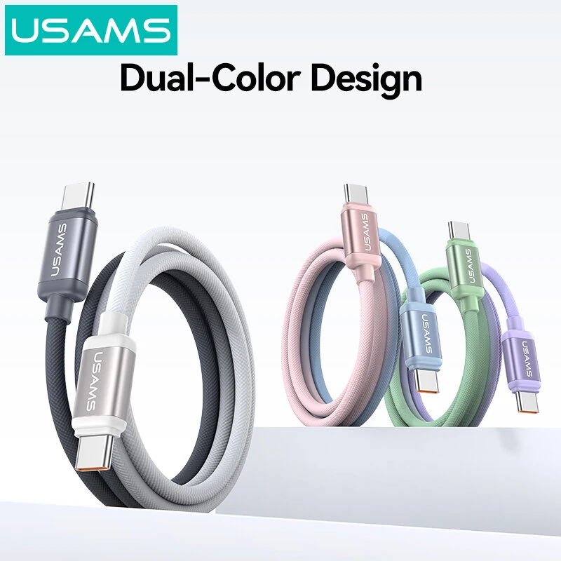 USAMS SJ756 PD60W Type-C to Type-C Cable PD QC FCP AFC Fast Charging Data Transmission Tinned Copper Core Line 1.2M Long for iPhone 17 17Pro 16 Pro Max 15 for SAMSUNG Galaxy Z Fold7 for HUAWEI Mate XTs