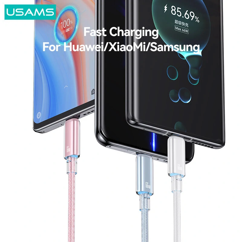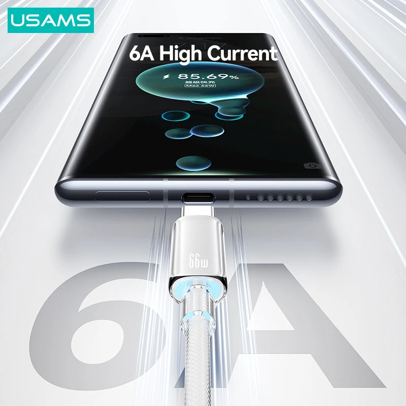 USAMS US-SJ658 6A 66W USB-A to Type-C Cable QC FCP AFC Fast Charging Data Transmission Tinned Copper Core Line 1.2M Long for iPhone 15 15 Plus for Huawei Mate60 Pro for Samsung Galaxy Z Flip4 for Xiaomi 13pro