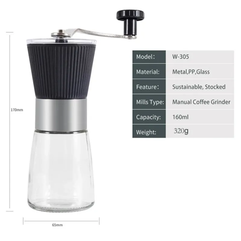 IPRee Manual Coffee Grinder Glass Portable Outdoor Coffee Machine Ceramic Grinding Core Pepper Grain Mill Coffeeware for Kitchen