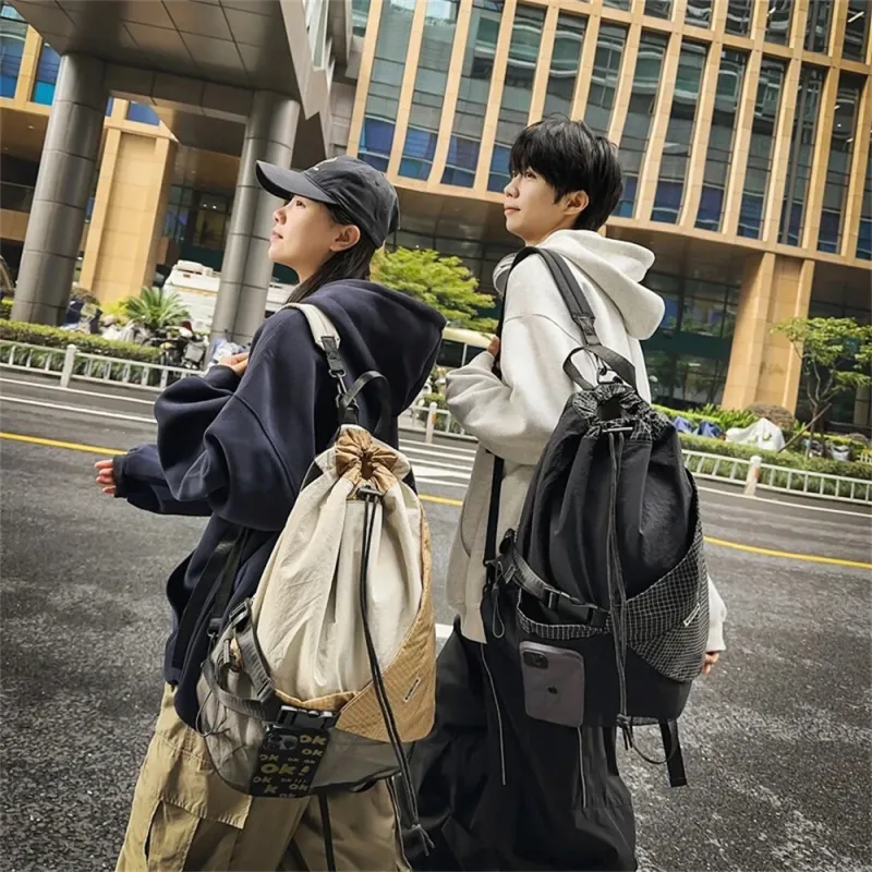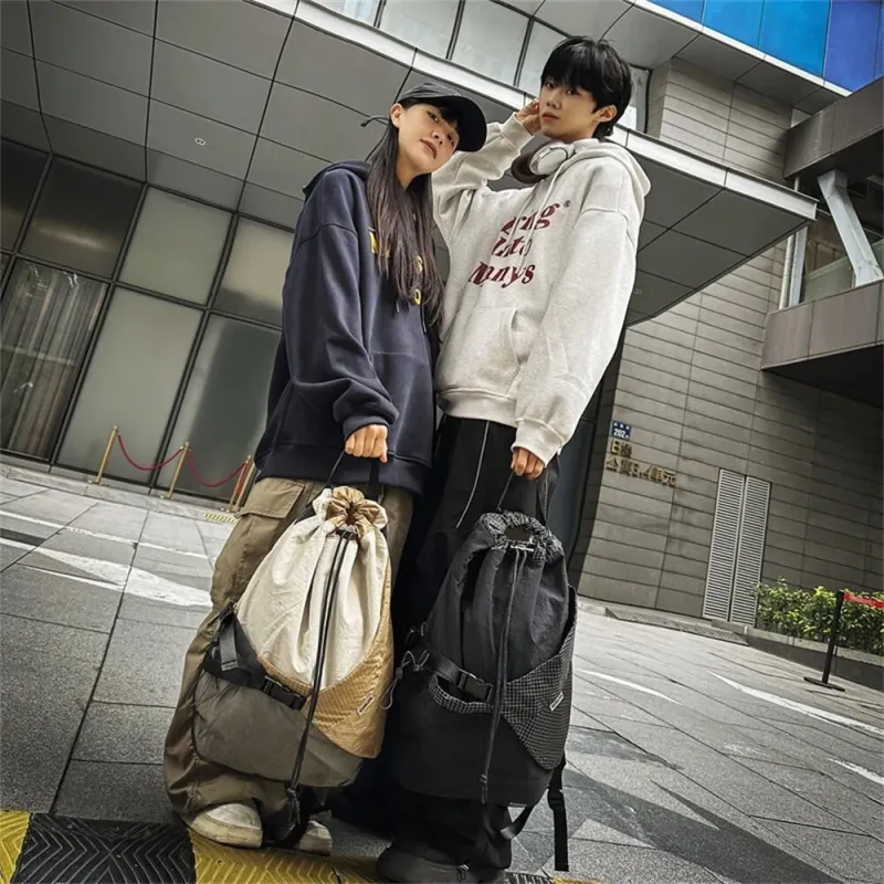 IPRee Outdoor Multifunction Waterproof Camping Travel Drawstring Backpack Men Women Techwear Style Hip Hop Crossbody Laptop Bag