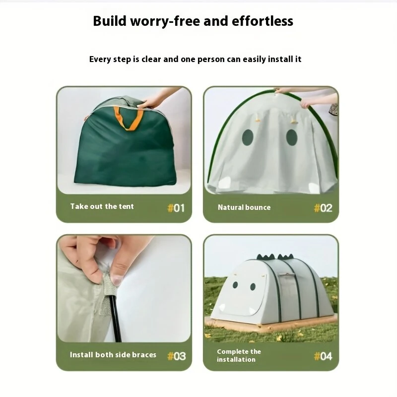 Green Dinosaur Tent with Storage Bag, Children's Play Tent with Window Gift, Portable and Quick-opening Design, For Family Parties, Camping Trips