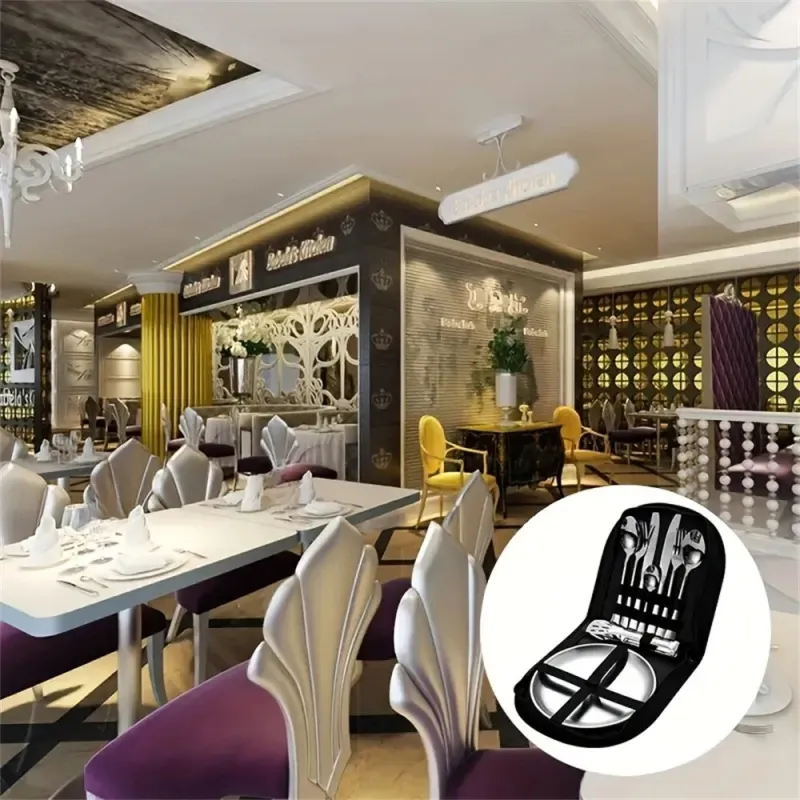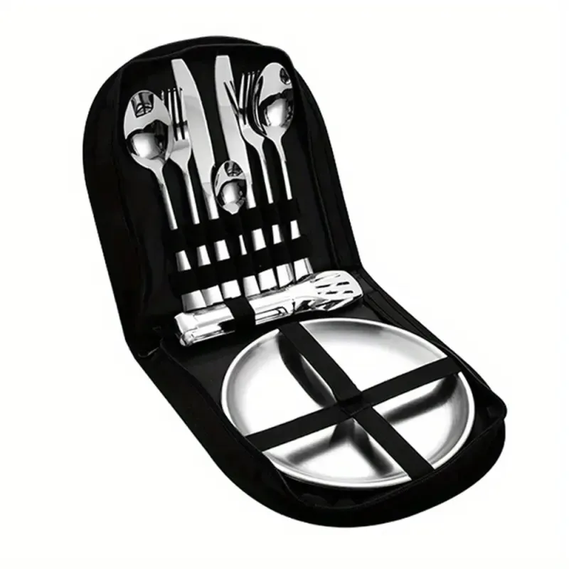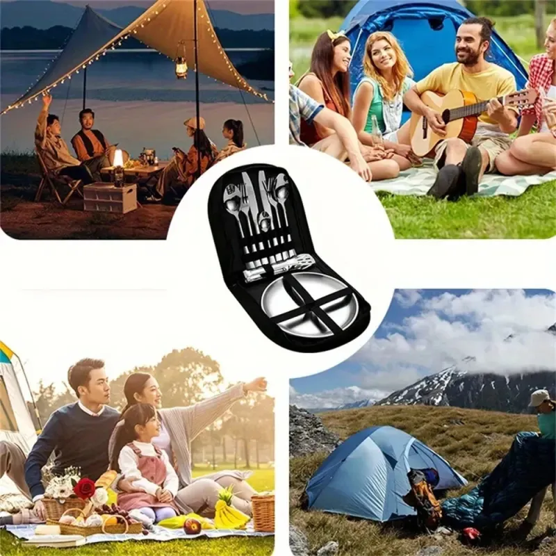 IPRee 11pcs Stainless Steel Flatware Set for Camping, Hiking & Outdoor Dining - Polished Finish Portable Cutlery Kit with Plates, Spoons, Forks, Travel Utensil Set for Picnics & Backpacking