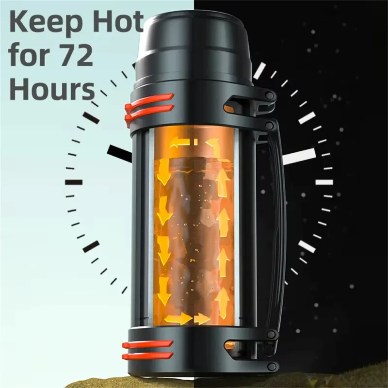 IPRee 1200ml Large Capacity Stainless Steel Insulated Bottle Leak-proof Portable Double-wall Vaccum Thermos Bottle Water Jug Keep Hot 72Hour for Hiking Travel
